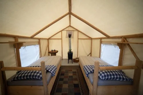 Lodge comforts, Wall tent accommodation, Sauna, Facilitated experiences.